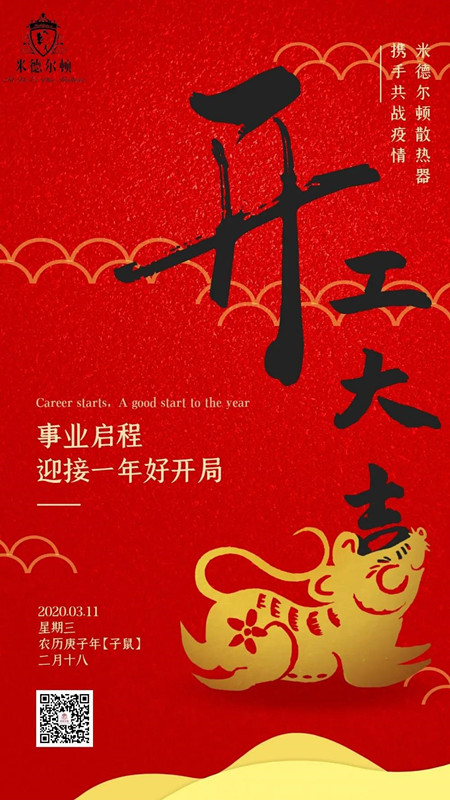 新年伊始,萬象更新 送走了一年的辛勞與忙碌 我們以嶄新的面貌迎來開工的第一天 農歷二月十八 米德爾頓全體員工恭祝大家 開工大吉 新年新氣象